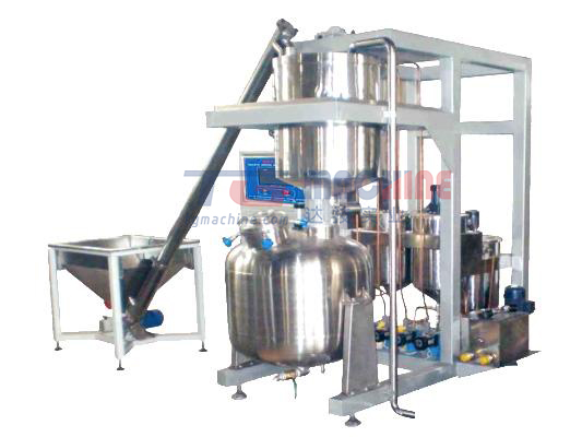 Dissolving and mixing unit with automatic weighing system It can automatically mix and dissolve glucose, granulated sugar, and other ingredients. The amount of the ingredients is precisely controlled by PLC.