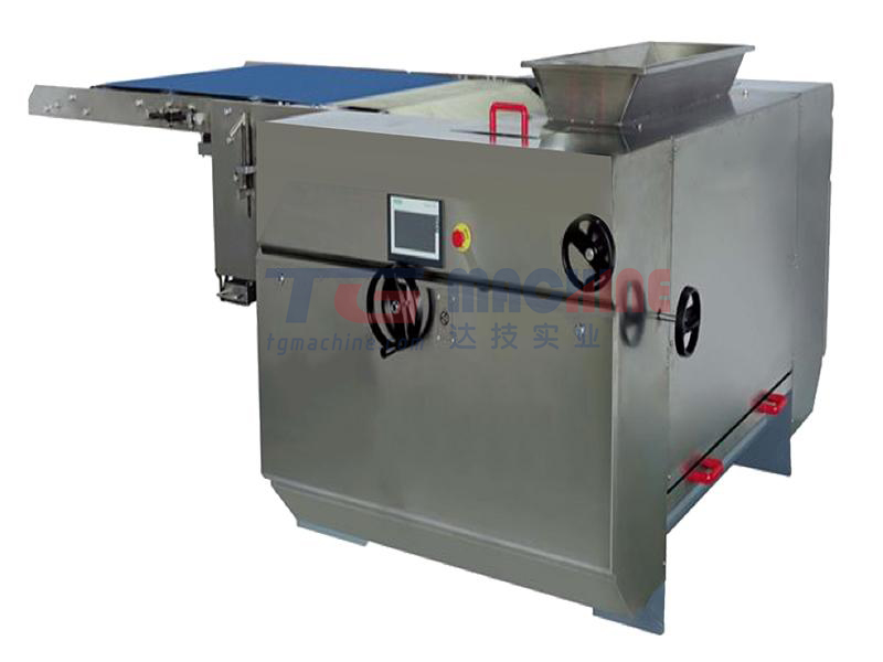 The material feeder is equipped with an automatic tensioning device and automatic deviation rectifying device to ensure reliable conveyance. The roller and groove roller are made of an alloy steel with a high hardness and no deformation. Parameters such as speed and dough thickness are easy to read on the screen and easily adjusted.